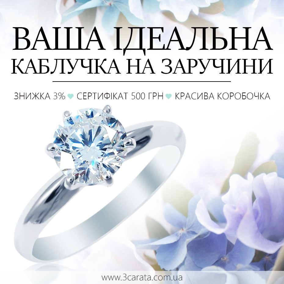 | Описание акции: | Бажаєте зробити пропозицію в День Валентина? Прекрасна ідея! Виберіть каблучку на заручини і ми подаруємо вам знижку 3% і Сертифікат на 500 грн для покупки пари обручок. Адже ми впевнені, з каблучкою від 3 Карата Вона неодмінно скаже «так» і почнеться підготовка до найпрекраснішої події у вашому житті − весілля з коханою людиною!![]() Як зробити красиве освідчення коханій дівчині? Купити каблучку на заручини Отримати у подарунок красиву коробочку і сертифікат на 500 грн Подарувати в романтичній обстановці у Валентинів День Почути радісне: ТАААК !!! Акція поширюється на всі каблучки розділу «Каблучки на заручини», при замовленні виробів, вартістю від 3 500 грн з 24 січня по 14 лютого 2017 року незалежно від наявності на складі. БОНУС! Ми надаємо красиву червону коробочку-сундучок безкоштовно до ВСІХ каблучок цього розділу в період дії акції, незалежно від суми! | ||||||
