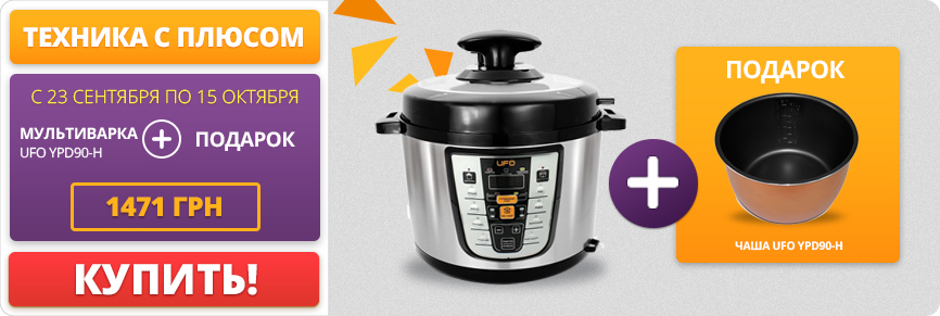 Описание акции: | Купите мультиварку UFO YPD90-H и получите в подарок* чашу UFO YPD90-H. ![]() | ||||||