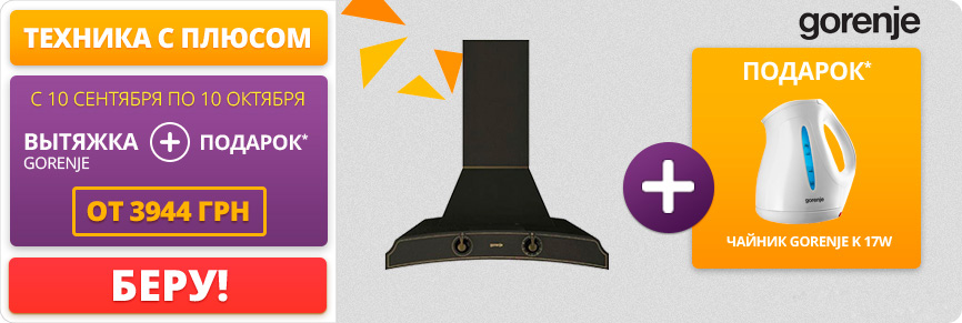 Описание акции: | Купите вытяжку GORENJE из списка ниже и получите в подарок* чайник GORENJE K 17W (DH2024-17001). ![]() | ||||||