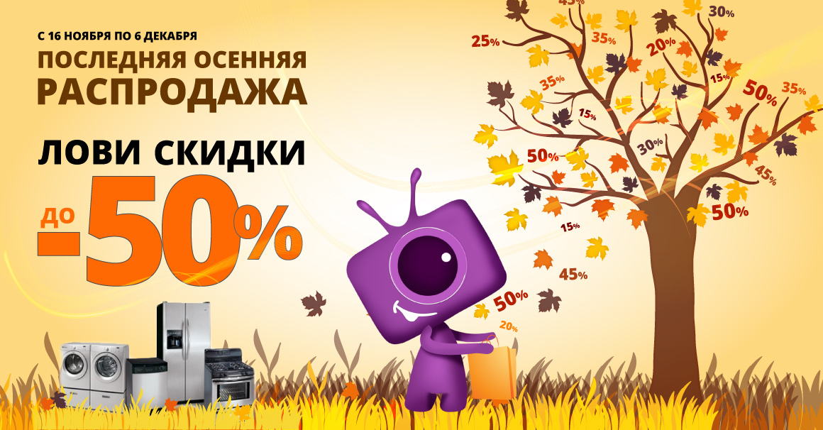 Описание акции: | Последняя осенняя распродажа! Лови скидки до 50%!![]() | ||||||