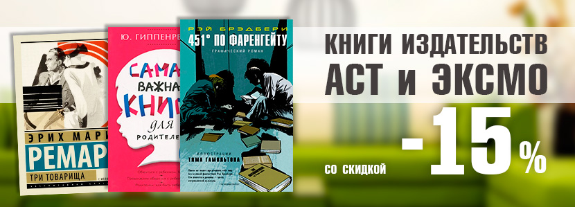 Описание акции: | Скидка -15% на книги Эксмо и АСТ!![]() ![]() | ||||||