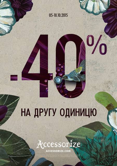 Только с 5 по 18 октября при покупке двух аксессуаров в магазине Accessorize вы получите скидку 40% на вторую единицу!