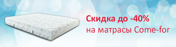 Come-for — динамично развивающееся предприятие, специализирующееся на производстве современных и доступных ортопедических изделий для сна. Матрасы торговой марки Come-for обладают отличными характеристиками по эластичности, гигроскопичности, сжимаемости, гигиеничности и износостойкости. Покупайте акционные модели со скидкой до -40%!