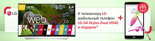 Описание акции: | К телевизору LG – смартфон LG G4 Stylus Dual H540 в подарок![]() | ||||||