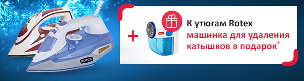 | Описание акции: | К утюгу Rotex– машинка для снятия катышков в подарок!  Выбираете новый утюг? Мы позаботимся о том, чтобы он прослужил долго и на ваших вещах не было и следа от накипи. Покупайте акционную модель и получайте машинку для удаления катышков Rotex RCC100-S в подарок! Акция действует с 11.01.17 по 30.01.17 или пока акционный товар есть в наличии. * Под «Подарком» следует понимать возможность потребителя в рамках акции приобрести указанный акционный товар и "подарок" к нему одним чеком и получить скидку на акционный товар в размере стоимости подарка. В случае расторжения договора купли-продажи акционного товара, потребителю подлежит возврату сумма, что непосредственно им была уплачена за данный товар. Приобретение товара на условиях действующей акции подтверждает ознакомление и согласие потребителя со всеми ее условиями. В случае участия данного товара в других акциях покупатель имеет право выбора только одной из действующих акций. | ||||||