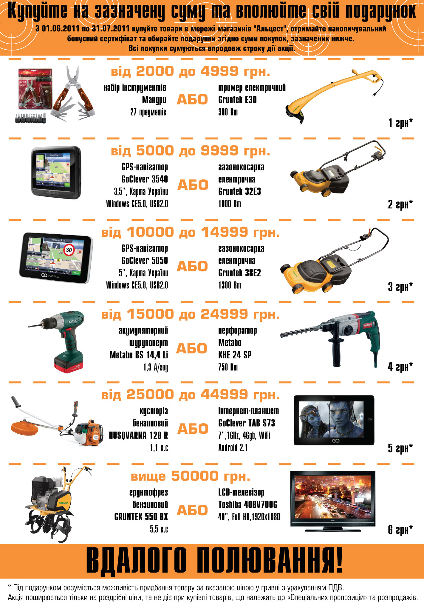 Описание акции: | Сезон полювання на подарунки відкрито. купуй на зазначену суму та вполюйте свій подарунок!![]() ![]() | ||||||
