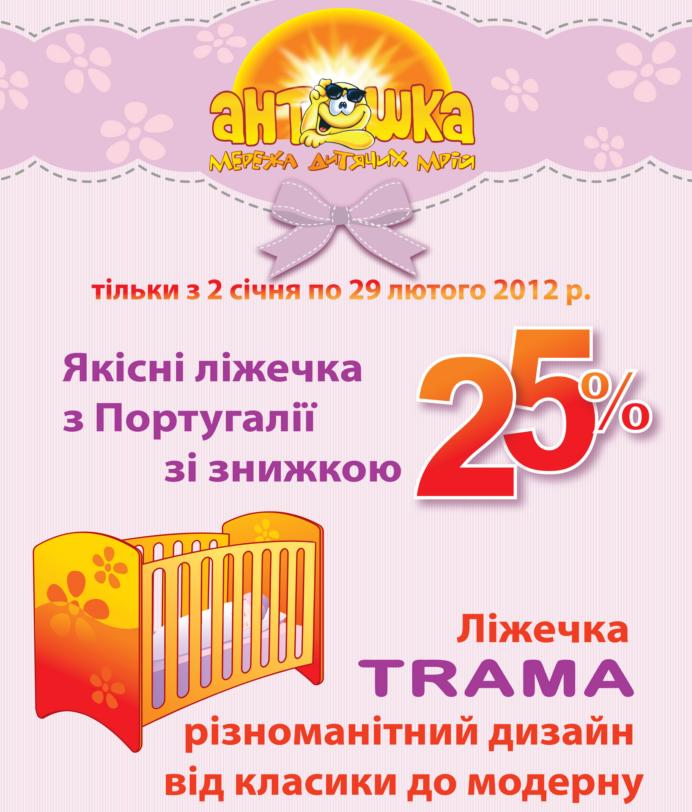 Описание акции: | Скидка 25% на кроватки Trama!![]() Количество товара ограничено. Скидка по акции не суммируется к дисконту. | ||||||