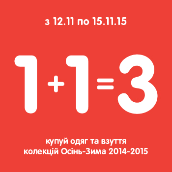 Описание акции: | Друзья, сеть детских магазинов "Антошка" приглашает вас принять участие в акции и совершать выгодные покупки! Мы рады сообщить, что при покупке 2 единиц товара из ассортимента Осень/Зима 20154 и 2015 года третью покупку из акционного ассортимента Вы получаете всего за 0,01 грн. Спешите, предложение действует с 12 по 15 ноября 2015 года во всей сети детских магазинов "Антошка"! ![]() | |