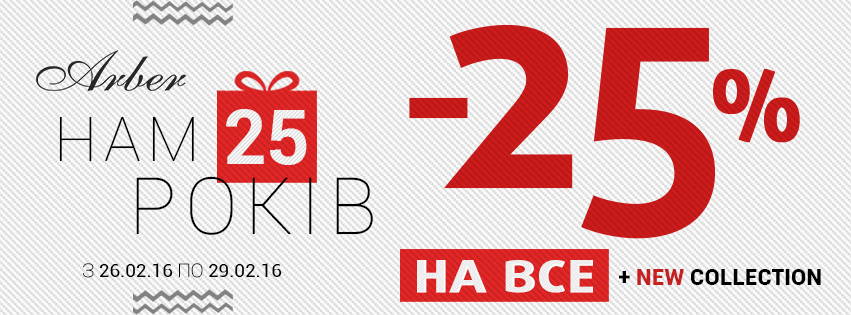 Вам -25% НА ВСЕ до цін розпродажу та на нову колекцію!