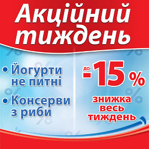 | Описание акции: | Мережа дискаунтерів АТБ знову поспішає порадувати своїх покупців новою акцією *! Щотижня, з середи по вівторок, у магазинах мережі діють знижки на товари з певної групи. Акційні позиції, на які діють знижки, оформлені спеціальним рекламним матеріалом з написом «Акційний тиждень». З 04.01.17 по 10.01.17 знижки діють на йогурти не питні та консерви з риби. Докладний перелік позицій дивіться тут. ![]() * Акція діє на території України в магазинах мережі ТОВ «АТБ-маркет» за умови наявності акційного товару. Акційні позиції позначені цінниками червоного кольору із зазначенням актуального розміру знижки, а також співвідношенням розміру знижки до ціни реалізації товару без знижки. ТОВ «АТБ-маркет» залишає за собою право змінювати акційні товари і ціни на них в період акції, а також завершити акцію достроково. У разі дострокового завершення акції, або внесення змін щодо періоду акції, акційного товару, ціни, або відсотка знижки, інформація про це з'явиться на даному сайті не пізніше, ніж за один день до внесення перерахованих вище змін. Детальну інформацію дізнавайтесь за телефоном гарячої лінії 0-800-500-415. Дзвінки зі стаціонарних і мобільних телефонів (Київстар, МТС, Life) на території України безкоштовні. | ||||||