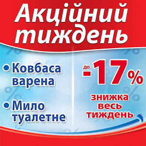 | Описание акции: | Мережа дискаунтерів АТБ знову поспішає порадувати своїх покупців новою акцією *! Щотижня, з середи по вівторок, у магазинах мережі діють знижки на товари з певної групи. Акційні позиції, на які діють знижки, оформлені спеціальним рекламним матеріалом з написом «Акційний тиждень». З 22.03.17 по 28.03.17 знижки діють на ковбасу варену і мило туалетне. Докладний перелік позицій дивіться тут. * Акція діє на території України в магазинах мережі ТОВ «АТБ-маркет» за умови наявності акційного товару. Акційні позиції позначені цінниками червоного кольору із зазначенням актуального розміру знижки, а також співвідношенням розміру знижки до ціни реалізації товару без знижки. ТОВ «АТБ-маркет» залишає за собою право змінювати акційні товари і ціни на них в період акції, а також завершити акцію достроково. У разі дострокового завершення акції, або внесення змін щодо періоду акції, акційного товару, ціни, або відсотка знижки, інформація про це з'явиться на даному сайті не пізніше, ніж за один день до внесення перерахованих вище змін. Детальну інформацію дізнавайтесь за телефоном гарячої лінії 0-800-500-415. Дзвінки зі стаціонарних і мобільних телефонів (Київстар, МТС, Life) на території України безкоштовні. | ||||||