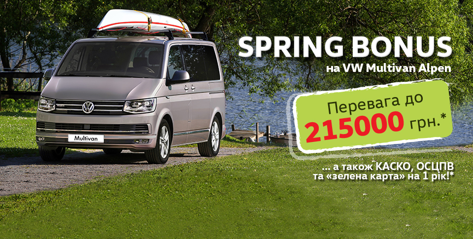 | Описание акции: | Spring Bonus: Multivan з перевагою до 215 000 гривень.![]() Multivan забезпечує унікальну багатофункціональність для різних вимог як в бізнесі, так і для відпочинку., Завдяки високому рівню індивідуального підходу в своєму класі, максимальної універсальності і прохідності по бездоріжжю, а також інноваційною концепцією приводу і низького рівня споживання палива. Цієї весни ми пропонуємо Вам більш ніж вигідну пропозицію для даної моделі - лімітовану кількість (тільки 24 автомобілі) Multivan HL ALPEN 2.0 l BiTDI 180 к.с. 7G DSG 4Motion з вигодою в 215 000 гривень! Не залежно від того, вирішите Ви купувати Multivan ALPEN з фінансуванням (кредит, лізинг) або за власні кошти, при покупці даної моделі Вас чекає ще один приємний бонус - пакет страховки, який включає поліс страхування КАСКО, поліс страхування ОСАГО і поліс "Зелена карта "в подарунок на 1 рік від нашого стратегічного партнера Porsche Finance Group Ukraine. Акційні умови діють в період з 13 березня по 31 травня 2017 року або до роспраддажі акційних автомобілів зі складу. Бажаєте дізнатися більше про цю пропозицію? | ||||||