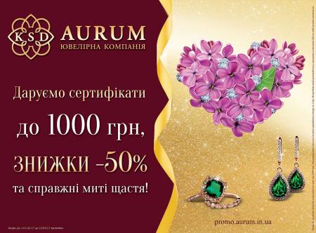 | Описание акции: | В KSD AURUM началась акция «Миті щастя» ко дню всех влюбленных и к 8 марта![]() Ко дню всех влюбленных и к 8 марта в магазине KSD AURUM будет действовать акция «Миті щастя» в период с 01.02.17 по 12.03.17. Суть акции: при покупке в магазине на сумму от 1000 грн каждый покупатель участвует в розыгрыше 1 из 25 романтических подарков: Романтичні подарунки: - вечір в ресторані для двох, - ексклюзивна фотосесія, - майстер-клас аргентинського танго, - зустріч у кінотеатрі, - вікенд за містом. В KSD AURUM началась акция «Миті щастя» ко дню всех влюбленных и к 8 марта При покупке на сумму свыше 2500 грн каждый покупатель гарантированно получает подарочный сертификат до 1000 грн на следующую покупку. | ||||||