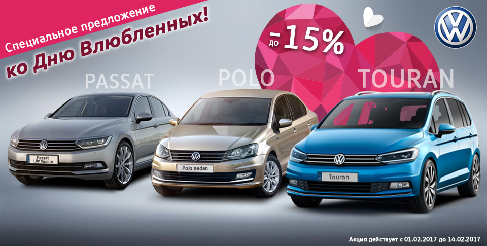 | Описание акции: | Автомобиль ко Дню Влюбленных!![]() А Вы уже выбрали подарок к 14-му февраля? Для всех любимых и влюбленных стартовала акция - "Автомобиль ко Дню Святого Валентина" ! ![]() ВНИМАНИЕ! Акция действует до 14.02.2017. | ||||||