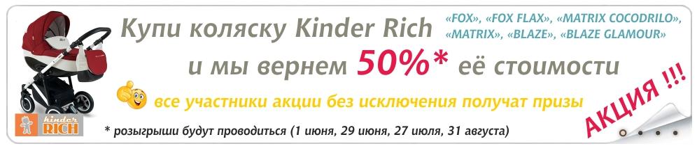Описание акции: | Приобретая коляску Kinder Rich «FOX», «FOX FLAX», «MATRIX COCODRILO», «MATRIX», «BLAZE», «BLAZE GLAMOUR» на сайте www.babyking.com.ua за полную стоимость, Вы автоматически становитесь участником данной акции. Под возвратом 50% стоимости коляски подразумевается скидочный купон победителю акции, на 50% стоимости коляски, который может быть использован на одноразовое приобретение любых товаров в одном заказе на сайте www.babyking.com.ua в течении 30 дней после объявления результатов. Розыгрыши победителей будут проводиться (1 июня, 29 июня, 27 июля, 31 августа) 2015 года, путем случайного выбора среди всех участников Акции с помощью сайта www.random.org Имена победителей, а также видео розыгрыша будут опубликованы на данной странице. Все участники акции получат призы (стоимость призов 0,01 грн) установленные администрацией сайта в день розыгрыша. Доставка призов по Украине осуществляется за счет получателя.![]() Администрация сайта оставляет за собой право вносить изменения в условия акции, переносить даты розыгрышей, прекратить данную акцию с соответствующим уведомлением на сайте www.babyking.com.ua В случае возврата коляски (по любой причине) победителем акции, при условии, что он уже использовал свой скидочный купон, ему будет возвращена только половина её стоимости. | |