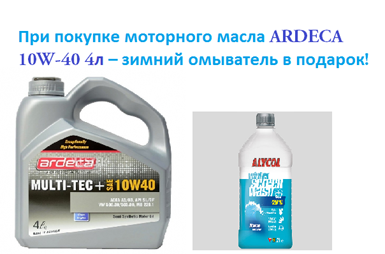 Каждый покупатель моторного масла ARDECA 10W-40 multi-tec + 4л получит в подарок зимний омыватель стекла Мол Аlycol Marine -20 2л.