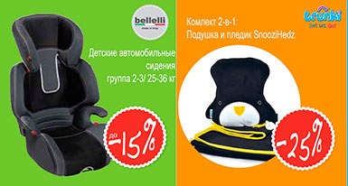 Описание акции: | Детские автокресла Bellelli со скидкой 15%, а также подушка-плед Trunki со скидкой 25%. Только в феврале! Позаботьтесь о тепле и безопасности Ваших малышей. ![]() | ||||||