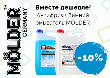 | Описание акции: | Акция «Вместе дешевле! Антифриз + Зимний омыватель Molder -10%»![]() Заботимся об автомобиле вместе. Только до конца зимы при покупке комплекта антифриза и зимнего омывателя бренда Molder – скидка -10%! В акции принимают участия такие комплекты: 1) Антифриз Molder KF-050-G12 5л + Омыватель зимний Molder SCH-20C-51 LIME 5л или Омыватель зимний Molder SCH-20C-50 SPORT 5л - вместе дешевле на 10% 2) Антифриз Molder KF-050-G11 5л + Омыватель зимний Molder SCH-20C-51 LIME 5л или Омыватель зимний Molder SCH-20C-50 SPORT 5л - вместе дешевле на 10%  | ||||||