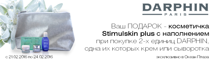 При покупке двух единиц Darphin, одна из которых крем или сыворотка, косметичка Stimuldkin Plus с наполнением в подарок!