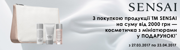 | Описание акции: | ![]() З покупкою продукції ТМ Sensai на суму від 2000грн - косметичка з мініатюрами у подарунок. | ||||||