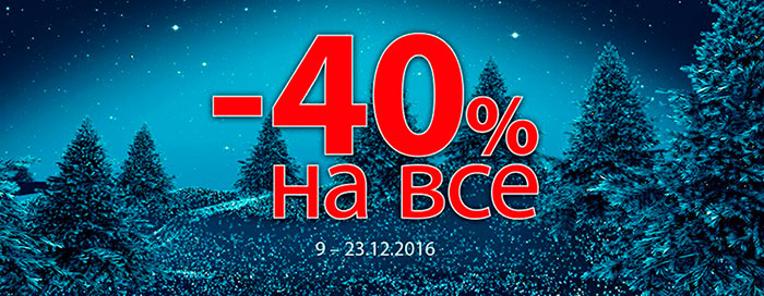 | Описание акции: | Невероятная новогодняя скидка в магазинах BROCARD, BONJOUR! С 9 по 23 декабря 2016 года скидка 40% на ВСЕ!*![]() Приобретайте новогодние подарки - парфюмерию, косметику, средства по уходу, аксессуары, наборы - со скидкой 40%. *Акция "Скидка 40% на все" действует во всех парфюмерно-косметических магазинах BROCARD и BONJOUR в Украине на весь ассортимент, кроме подарочных карт и продукции Kiehl’s (Килс). Во время акции не действуют другие скидки, в том числе по дисконтным картам. Акция не действует на покупки с использованием подарочных карт. Дополнительная информация об акции, перечень магазинов, пример расчета цены со скидкой и соотношение размера скидки к предыдущей цене реализации товара - у консультантов магазинов и в разделе Акции. В интернет-магазине www.letu.ua с 9 по 23 декабря 2016 г. проходит акция «-40% на ВСЕ» (за исключением подарочных карт и продукции М.А.С.). | ||||||