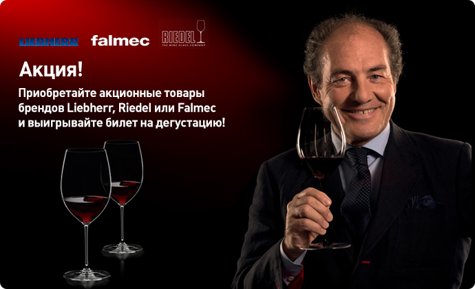 Каждый покупатель товаров Liebherr, Riedel и Falmec учавствует в розыгрыше пригласительного на шоу-дегустацию "Бокалы и Вино"!