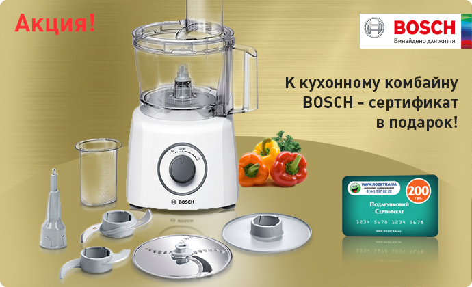 Приобретайте акционный кухонный комбайн BOSCH и получите денежный сертификат в подарок!