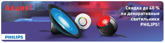 Описание акции: | Скидка до 40 % на декоративные светильники PHILIPS!![]() | ||||||