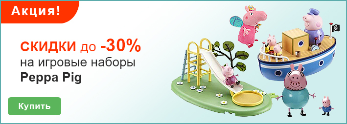 | Описание акции: | Скидки до -30% на игровые наборы Пеппа![]() | ||||||