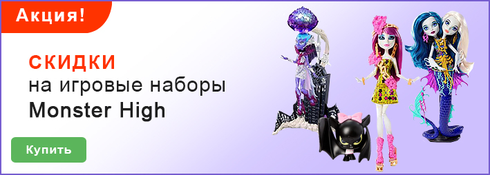 | Описание акции: | Скидки до -30% на игровые наборы Monster High!![]() | ||||||