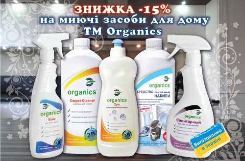 Лише до 15 лютого 2016р. в нашому магазині знижка -15% на миючі засоби для дому ТМ Organics (Україна).