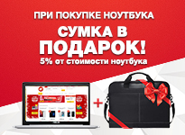| Описание акции: | Сумка в подарок к ноутбуку! Покупай ноутбук и получай сумку в подарок за 5% от стоимости ноутбука. ![]() | ||||||