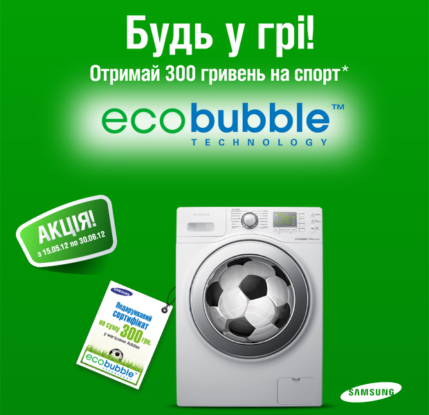 Описание акции: | Отримай 300 гривень на спорт!![]() Умови акції: 1. Придбайте пральну машину Samsung із технологією EcoBubble вартістю від 5000 грн. 2. Надішліть SMS на номер 7676, вказавши серійний номер пральної машини. 3. Отримайте поштою подарунковий сертифікат Adidas на суму 300 грн. 4. Звітайте до магазинів Adidas та оберіть будь-який товар Adidas на суму 300 грн. Організатор акції ТОВ "Самсунг Електронікс Україна Компані". Подробиці в магазинах Comfy і за телефоном гарячої лінії 0-800-500-190 | ||||||