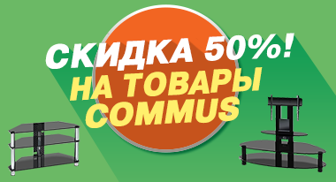 В период действия акции покупай тумбы для ТВ и крепления для тюнера ТМ COMMUS co скидкой 50% от действующей цены.