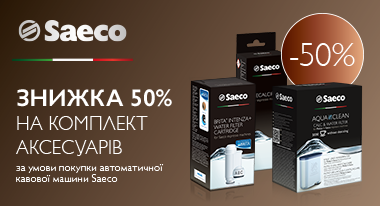 Описание акции: | При приобретении одной из автоматических кофемашин ТМ Saeco или Philips в период действия акции, покупатели получают возможность приобрести комплект аксессуаров на выбор (очиститель от накипи CA6700/00 и фильтр для воды Brita Intenza + CA6702/00 или очиститель от накипи CA6700/00 и фильтр для воды Aqua Clean CA6903/00) со скидкой 50% (одна единица кофемашины из указанных моделей - один комплект аксессуаров по одному фискальному чеку). Количество наборов ограничено наличием в каждом конкретном магазине COMFY. Подробные условия акции узнавайте на сайте facebook.com/PhilipsUkraine или по телефону 0-800-500-697 (все звонки в пределах Украины со стационарных телефонов бесплатные). Организатор акции - ООО "Филипс Украина". Партнер акции - ООО «Комфи ТРЕЙД» ![]() | ||||||