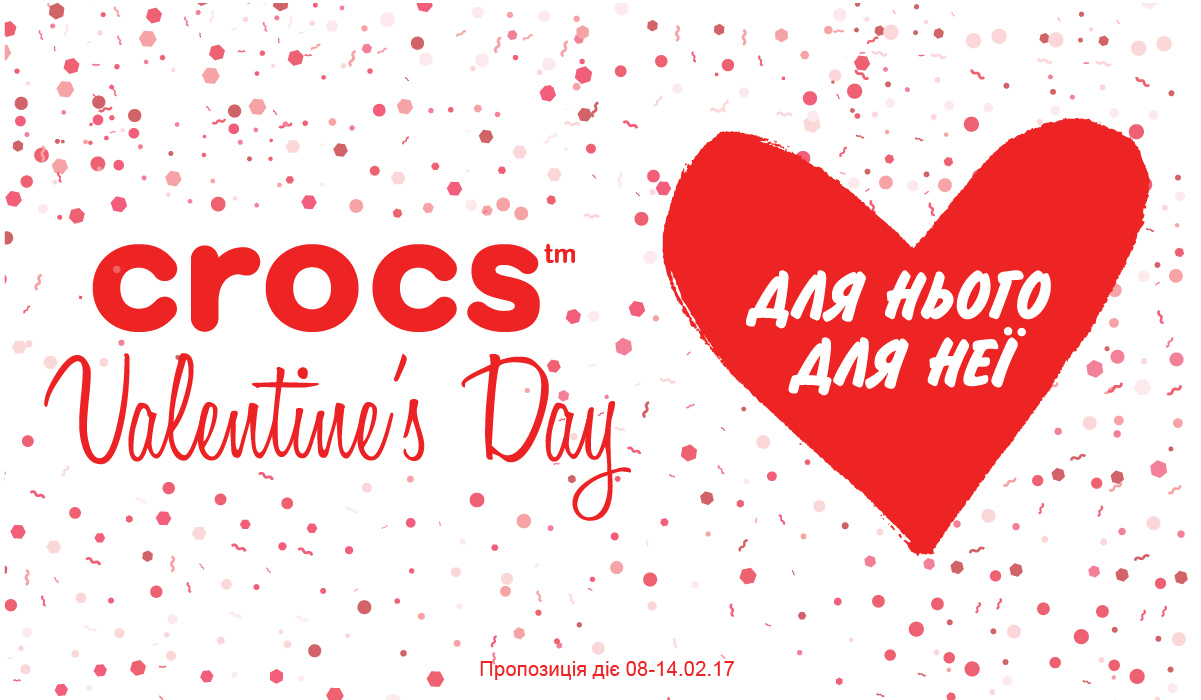 | Описание акции: | ![]() Crocs підготували для Вас спеціальну пропозицію до дня Святого Валентина: 699 грн. та 799 грн. на обрані моделі! Подаруй коханій людині свято! Акція діє 8-14.02.17 | ||||||