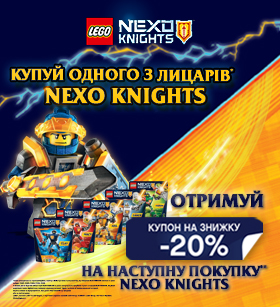 | Описание акции: | Купуй одного з лицарів* ЛЕГО Некзо Найтс та отримуй купон зі знижкою 20% на наступну покупку будь-якого набору ЛЕГО Некзо Найтс! *Під лицарем мається на увазі набори ЛЕГО Некзо Найтс 70362, 70363, 70364, 70365, 70366 ** Акції та знижки не сумуються ![]() | ||||||
