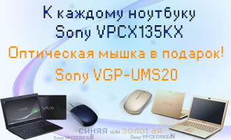 Описание акции: | Мышь Sony VGP-UMS20 в подарок! В подарок, к престижу и портативности Sony Vaio серии X, оптическая мышка Sony!!! ![]() | ||||||