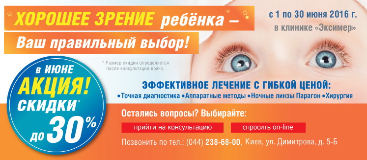 Описание акции: | Лечение зрения ребенка -30%![]() | ||||||