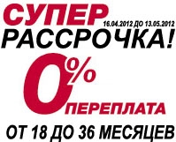 Уважаемые покупатели! Рады Вам сообщить, что с 16 апреля 2012 года, товары, представленные в нашем магазине, можно будет приобрести в рассрочку на 18, 24 или 36 месяцев.![]() Если Вы давно мечтаете, о новом холодильнике, стиральной машине или жидкокристаллическим телевизоре, но отложенных денег катастрофически не хватает, мы с удовольствием поможем Вам в этой проблеме. Посетив магазин «Эльдорадо в период с 16 апреля по 13 мая Вы сможете оформить рассрочку без ущерба для семейного бюджета на любую выбранную Вами технику и электронику. Банк Ренессанс Капитал гарантирует прозрачное оформление кредита без справки о доходах и без переплат. Вам не нужно будет идти в банк, чтобы получить предварительное решение о возможности получения кредита, все это Вы сможете сделать прямо в магазине. Без лишних усилий Вы сможете оформить все возможные документы и получить высококачественный товар. Правила проведения акции уточняйте в розничных сетях магазинов «Эльдорадо». Или по телефону горячей линии 080 030-00-30. | ||||||