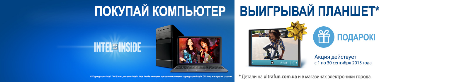 1. Приобретайте ноутбук или десктоп на базе процессора Intel® Core™ в период з 1 по 30 сентября 2015 года.