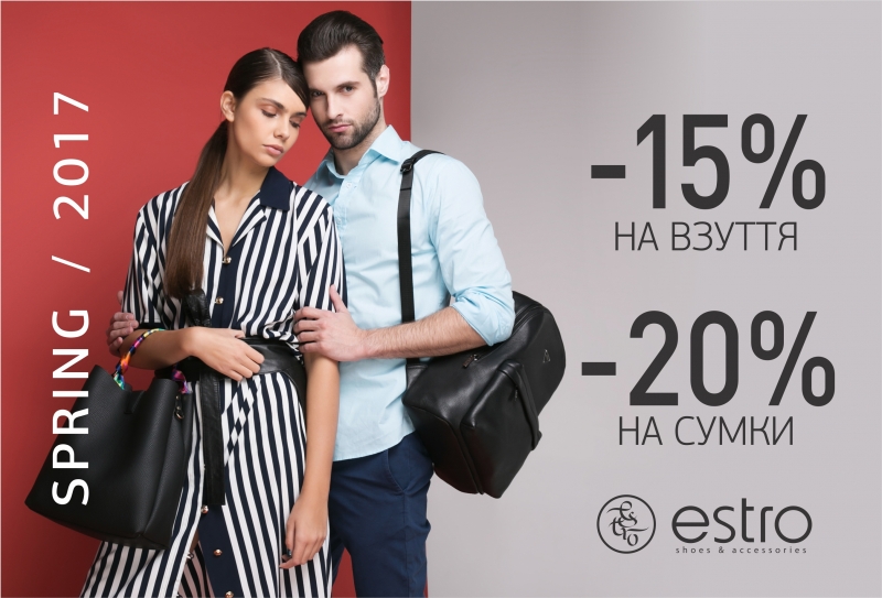 | Описание акции: | ![]() Знижки у ESTRO! 15% - на взуття нової колекції 2017 20% - на ремені, шарфи, гаманці, брелки, ключниці. 30% - на сумки італійського виробництва ТМ «Cromia», «Gianni Chiarini» та «Tosca Blu» Магазин Estro ТРЦ Dream Town 1 (2 поверх, атріум Греція) | ||||||