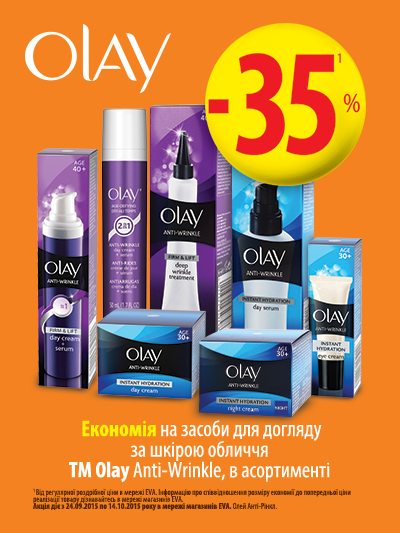 Економія 35% на засоби для догляду за шкірою обличчя ТМ Olay Anti-Wrinkle, в асортименті