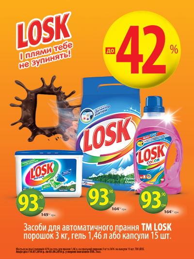 Описание акции: | Критерії щодо вибору пральних машин Сьогоднішнє життя важко уявити без помочі побутової техніки. Особливо стоїть питання в сім’ях з маленькими дітьми. Якщо Ви вирішили придбати нову пральну машину, зверніть увагу на такі чинники: · тип завантаження (моделі з вертикальним типом завантаження підійдуть для маленьких приміщень, горизонтальний аналог буде слугувати додатковою поверхнею); · габарити (залежать від квадратури, на якій планується розташування пральної машини); · об’єм (обирається з розрахунку кількості членів родини). Пам’ятайте про правильний догляд за технікою та використання якісного порошку. Економія до 42% на засоби для автоматичного прання ТМ LOSK (порошок 3 кг, гель 1,46 л або капсули 15 шт.) Лоск. ![]() | ||||||