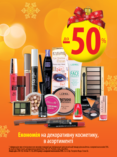 | Описание акции: | Як вибрати тіні відповідно до кольору очей Погляд здатний багато розповісти про жінку. Впевнена в собі дівчина не стане відводити очей, якщо на неї дивиться привабливий чоловік. А для того, щоб не сумніватися в собі, приділіть своєму щоденному макіяжу на пару хвилин більше часу і пограйте з відтінками тіней. Блакитнооким дівчатам підійдуть різні комбінації сірого і смарагдового, зеленооким — уся коричнева палітра, а власниці карих очей можуть поекспериментувати з тінями фіолетово-бузкової гамми. Економія до 50% на декоративну косметику в асортименті. ![]() | ||||||