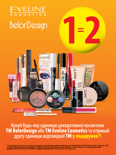 | Описание акции: | Діловий макіяж: тонкощі та нюанси Співбесіда при прийомі на роботу, важливі ділові зустрічі, перемови та й звичайні робочі будні в офісі потребують відповідного зовнішнього вигляду. Найперше, що треба знати про діловий мейкап, — жодного бойового розфарбування! Ваш діловий макіяж має підкреслювати свіжість та професіоналізм, — так говорять модні експерти, і з ними неможливо не погодитися. Ще одна порада — чим більше на вас аксесуарів та чим яскравіший діловий костюм, тим менше має бути косметики. І навпаки — чорний чоловічий костюм припускає більш яскравий акцент на очах, ніж зазвичай. Але й тут треба бути обережними і експериментувати лише тоді, коли ви впевнені в своєму відчутті стилю та смаку. Універсальна порада — обирайте світлі, м’які відтінки тіней, трохи рум’ян та неяскраву помаду. 1=2! Купуй будь-яку одиницю декоративної косметики TM Eveline Cosmetics, TM BelorDesign та отримай другу одиницю відповідної ТМ у подарунок! В акції не беруть участь подарункові набори. ![]() | ||||||