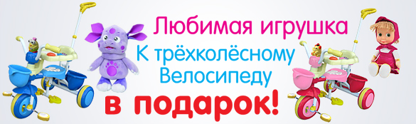 Описание акции: | Любимая игрушка к трёхколёсному велосипеду в подарок! Велосипед Tcv Розовый + Маша 796 грн., Велосипед TCV Голубой + Лунтик 796 грн. ![]() | ||||||