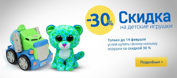 Описание акции: | Успей купить своему малышу игрушки со скидкой 30%.![]() | ||||||