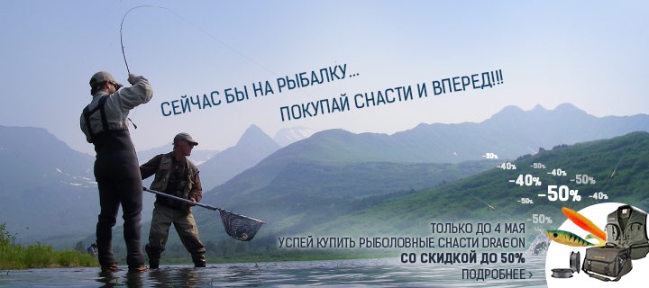 Описание акции: | Только до 4 мая успей купить рыболовные снасти Dragon со скидкой до 50%![]() | ||||||