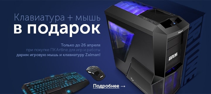 Описание акции: | Купи компьютер для игр и работы Artline — получи клавиатуру и мышь в подарок!![]() | ||||||
